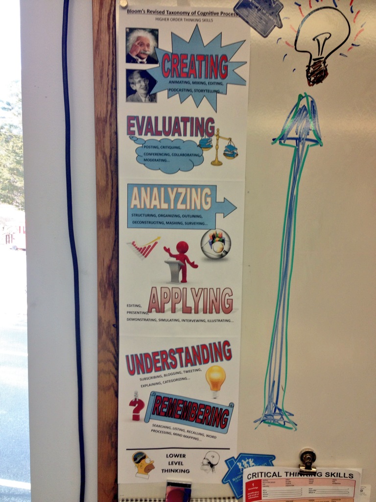 The links below are to a photo and a PDF of a poster I created (after seeing a similar one in a teacher’s classroom in Portsmouth NH at an edcamp!) of the updated Blooms taxonomy.  Please feel free to take them or create your own!